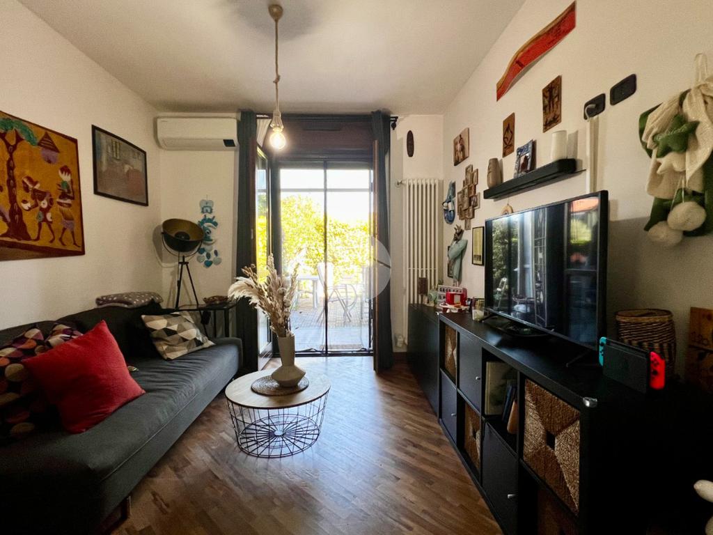 In una palazzina del 2005, proponiamo in vendita un accogliente trilocale al piano terreno, completamente ristrutturato nel 2018 e privo di barriere architettoniche. L’ingresso si apre su un luminoso living con cucina a vista, da cui si accede al primo giardino privato, oggi adibito a orto. Proseguendo una camera, attualmente utilizzata come salone, che conduce al secondo giardino, ampio e riservato: qui una zona pavimentata ospita comodamente tavolo, sedie e divanetti, mentre l’area verde, completa di barbecue, regala momenti di relax e convivialità. Dal giardino privato è inoltre possibile accedere direttamente al giardino condominiale. La zona notte è composta da una camera da letto matrimoniale. Il bagno è finestrato ed è dotato di box doccia. Il riscaldamento è autonomo. A completare la proprietà un pratico ripostiglio, una cantina e un box auto. Una casa ideale per chi desidera vivere la comodità del piano terra con ampi spazi esterni da godere tutto l’anno.