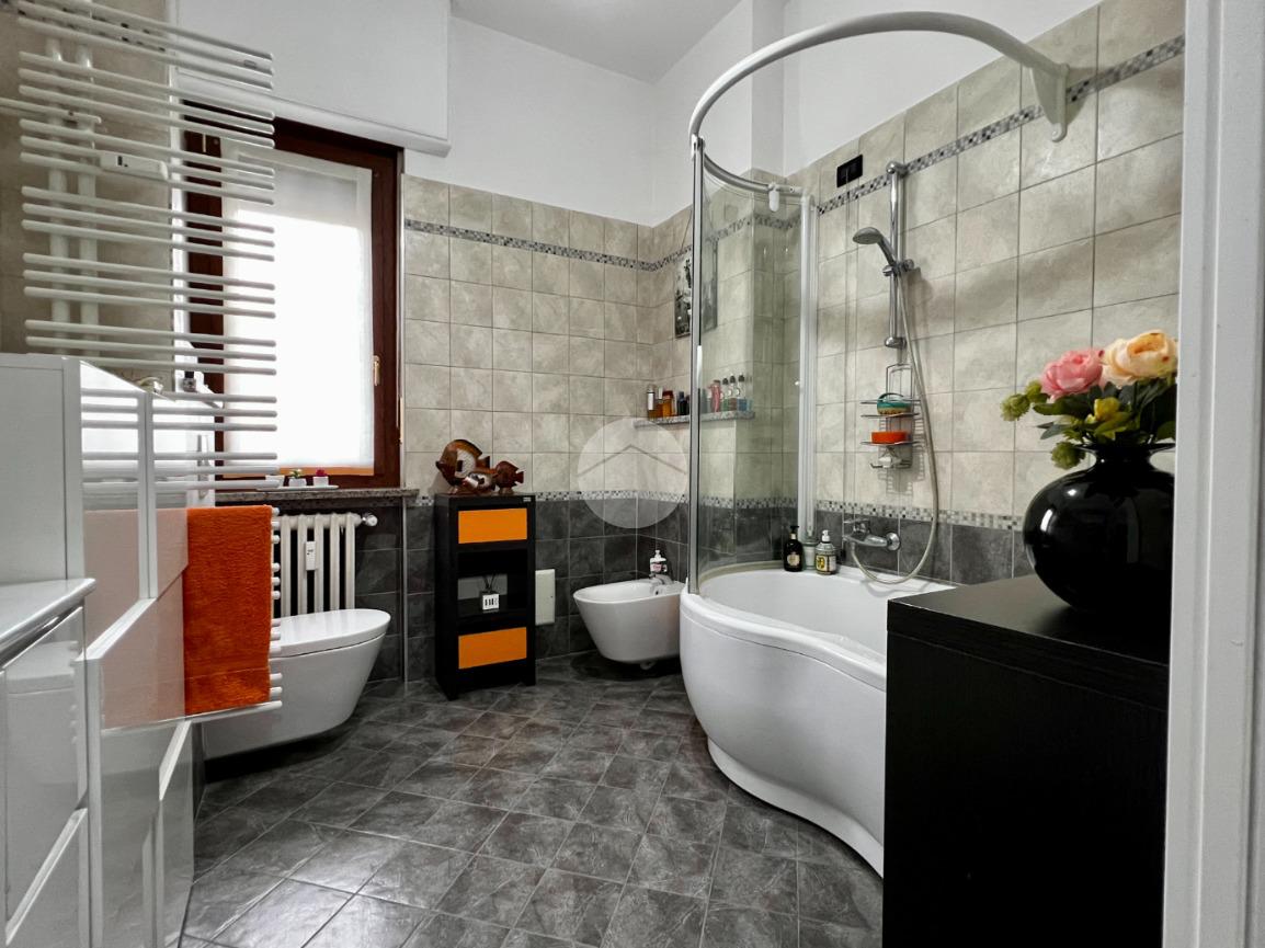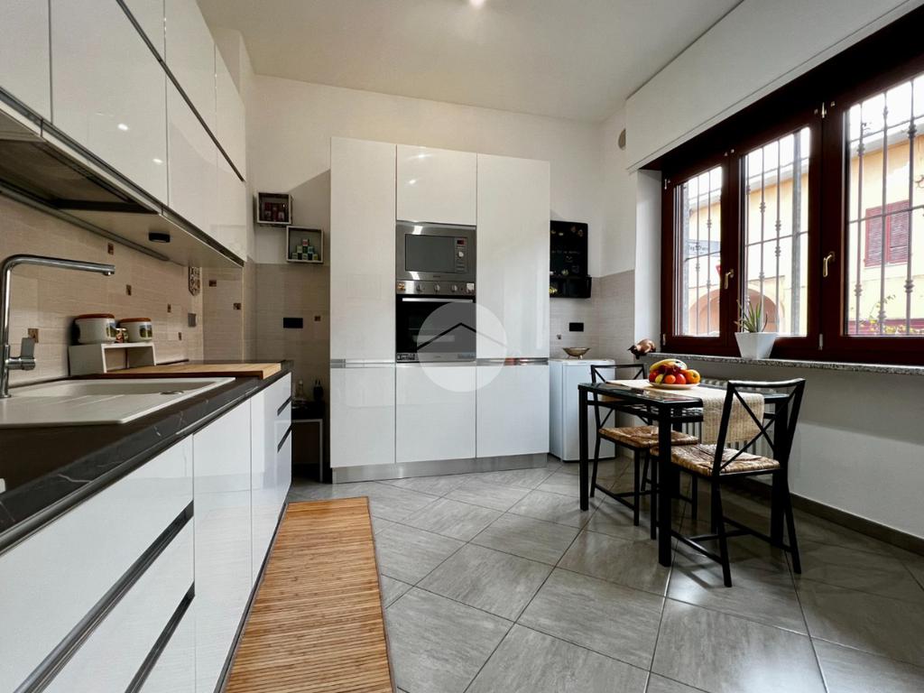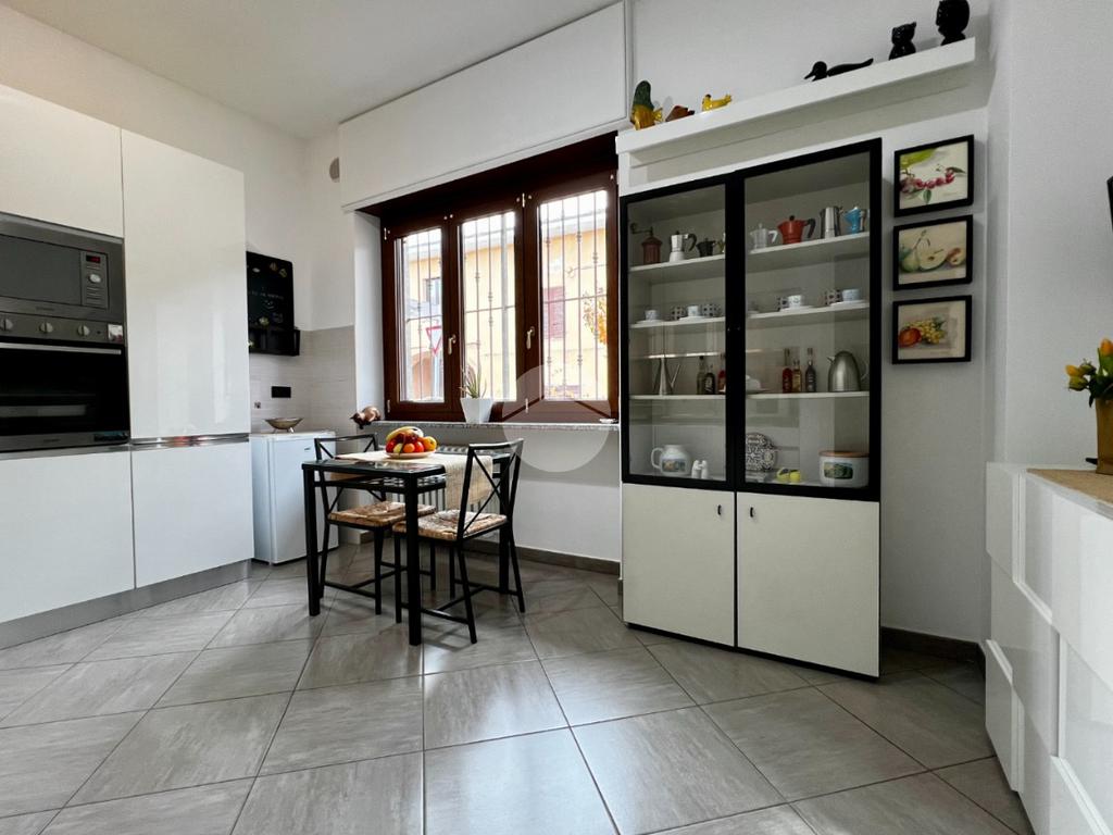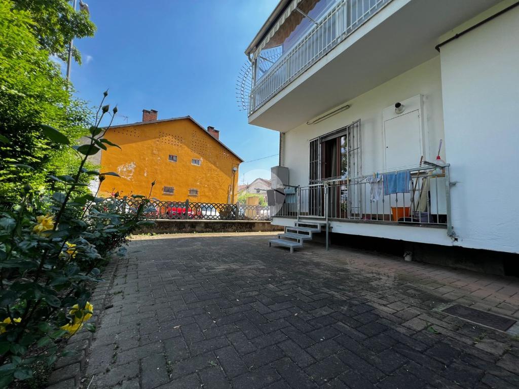 In un piccolo e tranquillo contesto abitativo proponiamo in vendita un appartamento al piano rialzato, caratterizzato da ambienti generosi e da un comodo cortile ad uso esclusivo, ideale per momenti di relax all’aperto. L’ingresso si apre sull’ampio salone luminoso, impreziosito da una portafinestra che conduce direttamente all’area esterna. Separata e ben organizzata la cucina abitabile. Un pratico disimpegno accompagna alla zona notte, composta da due grandi camere matrimoniali e da doppi servizi finestrati: uno di servizio e un secondo bagno ampio e dotato di moderna vasca. L’appartamento, ristrutturato nel 2016, presenta infissi nuovi con doppi vetri oltre al riscaldamento centralizzato con termovalvole, per un comfort ottimale e una gestione più efficiente dei consumi. Le porte interne sono state sostiuite nel 2024. Completa la proprietà una comoda cantina. Possibilità di acquistare a parte un box auto pertinenziale situato a circa 1 km dall’abitazione. Un’opportunità ideale per chi cerca spazi generosi, indipendenza e tranquillità senza rinunciare ai servizi della zona.
