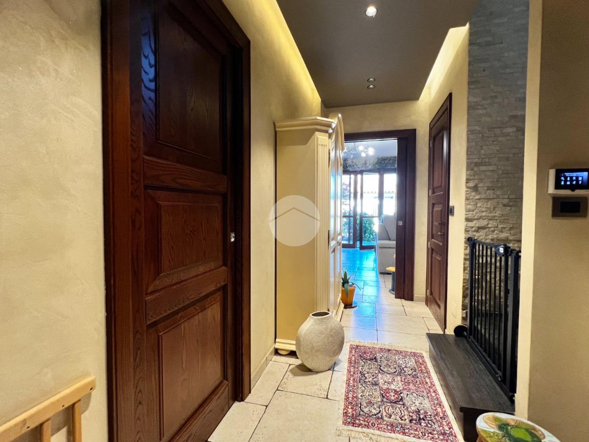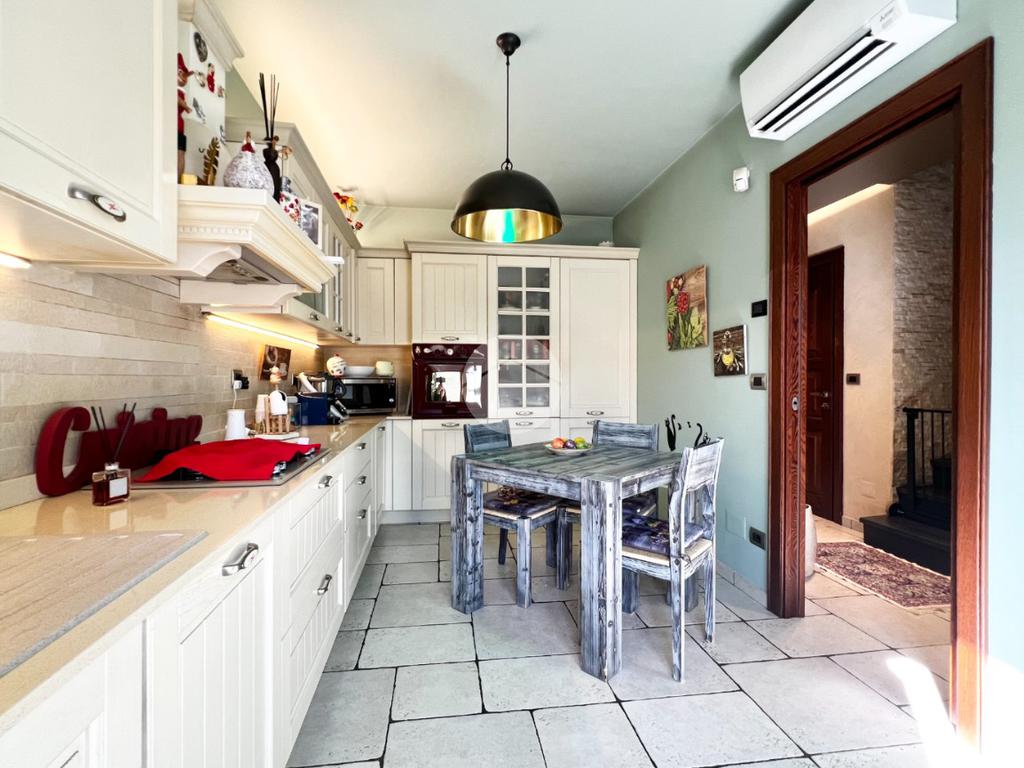 L'immobile, situato all'interno del complesso residenziale denominato “Tenuta dei Conti Mazzucchi”, rappresenta un connubio tra storia, eleganza e comfort. L'edificio originario risale al Settecento ed è stato completamente recuperato e valorizzato nel 2012. L’ingresso è indipendente dal giardino privato, che conduce al portoncino blindato e a un comodo disimpegno. Al piano terra si trovano una cucina abitabile con accesso diretto al giardino d’ingresso e un ampio soggiorno con camino, molto luminoso grazie alla porta finestra che affaccia sul giardino retrostante, ideale come zona relax o per pranzi all’aperto. Completano il piano un ripostiglio e un bagno finestrato con box doccia. La zona notte al piano superiore comprende tre camere da letto, un bagno finestrato con vasca idromassaggio e un secondo bagno completo di doccia. Salendo ulteriormente si accede alla mansarda, oggi utilizzata come spazio relax e zona studio. L’abitazione è stata ristrutturata nel 2016 con materiali di pregio e particolare attenzione al comfort: riscaldamento autonomo a pavimento, caldaia a condensazione, pannelli solari, impianto d’allarme e climatizzazione caldo/freddo in tutti gli ambienti. Completano la proprietà due box auto.